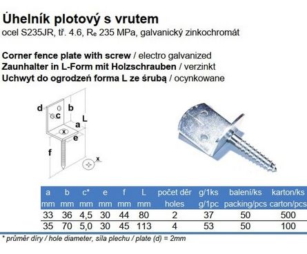 Úhelník plotový s vrutem