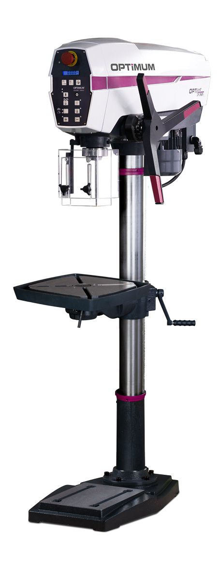 Sloupová vrtačka s řemenovým pohonem a moderním designem.