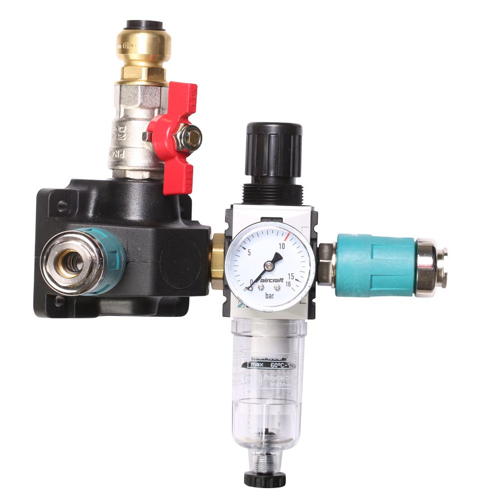 Rozdělovací krabice se 2 bezp. rychlospojkami, ventilem, regulátorem s filtrem ø 18 mm