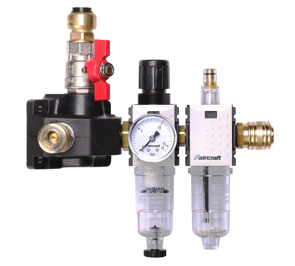 Rozdělovací krabice se 2 rychlospojkami, ventilem, regulátorem s filtrem a přimazávačem ø 22 mm