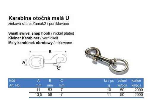 Popis a použití - karabina otočná malá