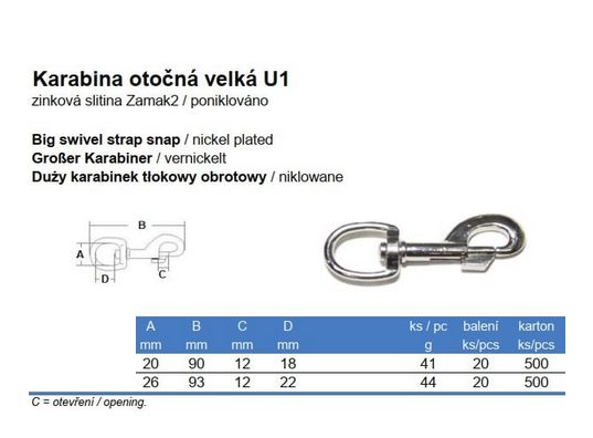 Popis a použití - karabina otočná velká