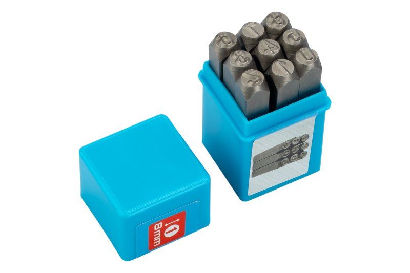 Ruční raznice - číslice, kvalitní uhlíková ocel - pevnost do 800 N/mm2, zakalené hroty - vysokká tvrdost, rozměry : výška písmen - 8 mm, balení : plastový box.