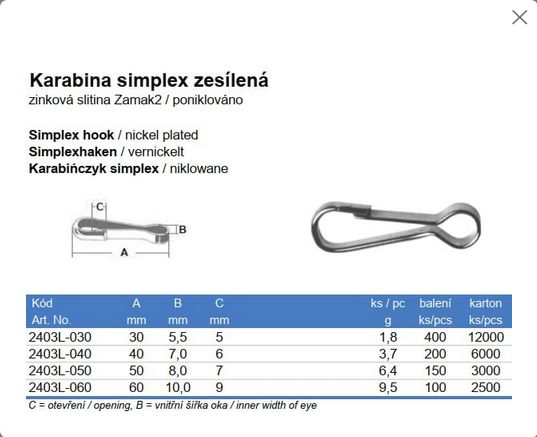 Popis a použití - karabina Simplex DIN 5287A - zesílená